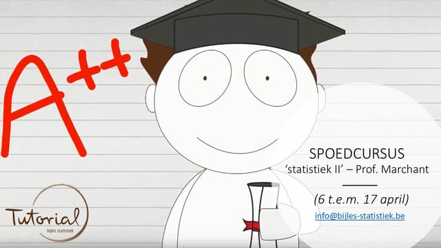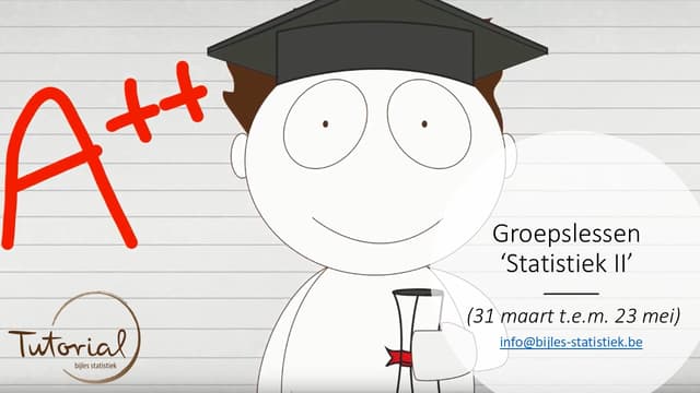 Tijdens de paasvakantie organiseert Tutorial Studiebegeleiding - net als in 2025 - een intensieve spoedcursus 'statistiek II' in kleine groep. Deze lessenreeks is een ideale voorbereiding op het examen van Prof. Marchant. Onder begeleiding van onze meest ervaren en succesvolle studiebegeleider werken studenten doelgericht aan de leerstof, krijgen ze duidelijke uitleg bij moeilijke concepten en oefenen ze uitgebreid met examenvragen. Zo worden ze stap voor stap klaargestoomd voor het examen.