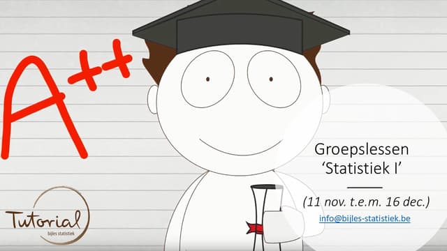 Tutorial Studiebegeleiding bouwt verder op het succesvolle concept van groepslessen statistiek I (FPPW) en biedt er opnieuw aan in de voorbereiding op het examen van Prof. De Neve. Vanaf dinsdag 11 november staat onze meest ervaren en zeer succesvolle studiebegeleider voor een kleine groep studenten om hen klaar te stomen voor hun examen statistiek I.
